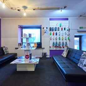В офисе создана уникальная атмосфера, подобная кофейни. Приглушенный и мягкий свет, современная и удобная мебель, свободный wi-fi, Xbox, тетрисы, настольные игры, журналы, чай, кофе, фирменные сладости — условия располагают к приятному времяпровождению и отдыху, в то время как опытные специалисты занимаются выполнением работы. Кроме того, в сервисе выбрана концепция «открытого» ремонта, что позволяет клиенту наблюдать за тем, что происходит с его техникой и быть уверенным в сохранении заводских запчастей и конфиденциальности персональных данных.